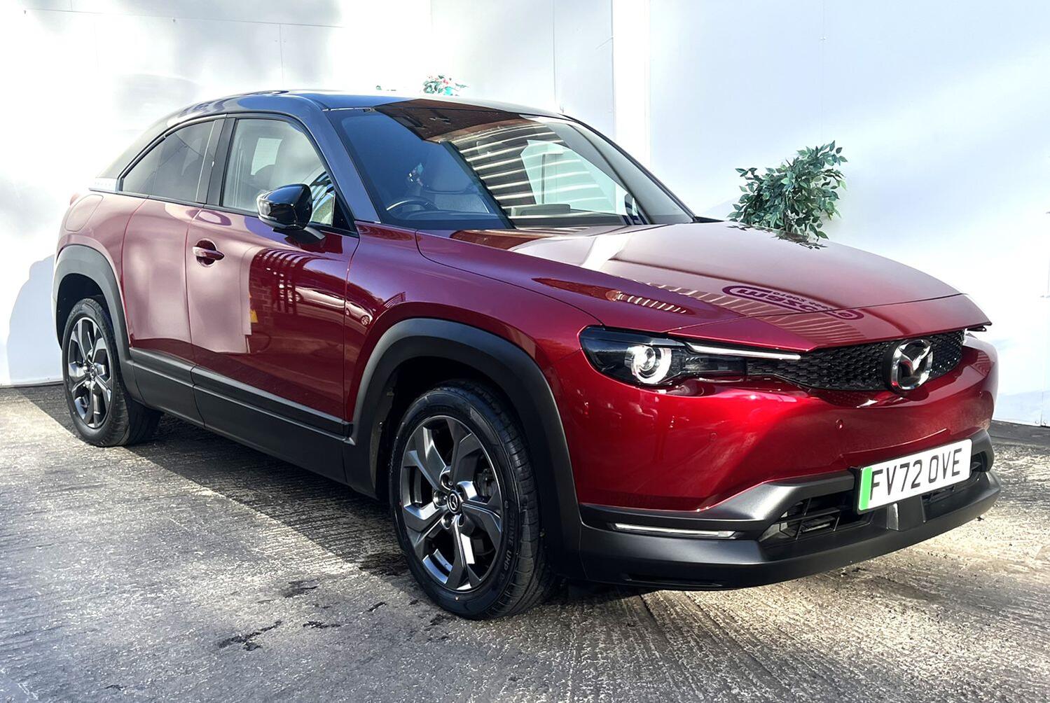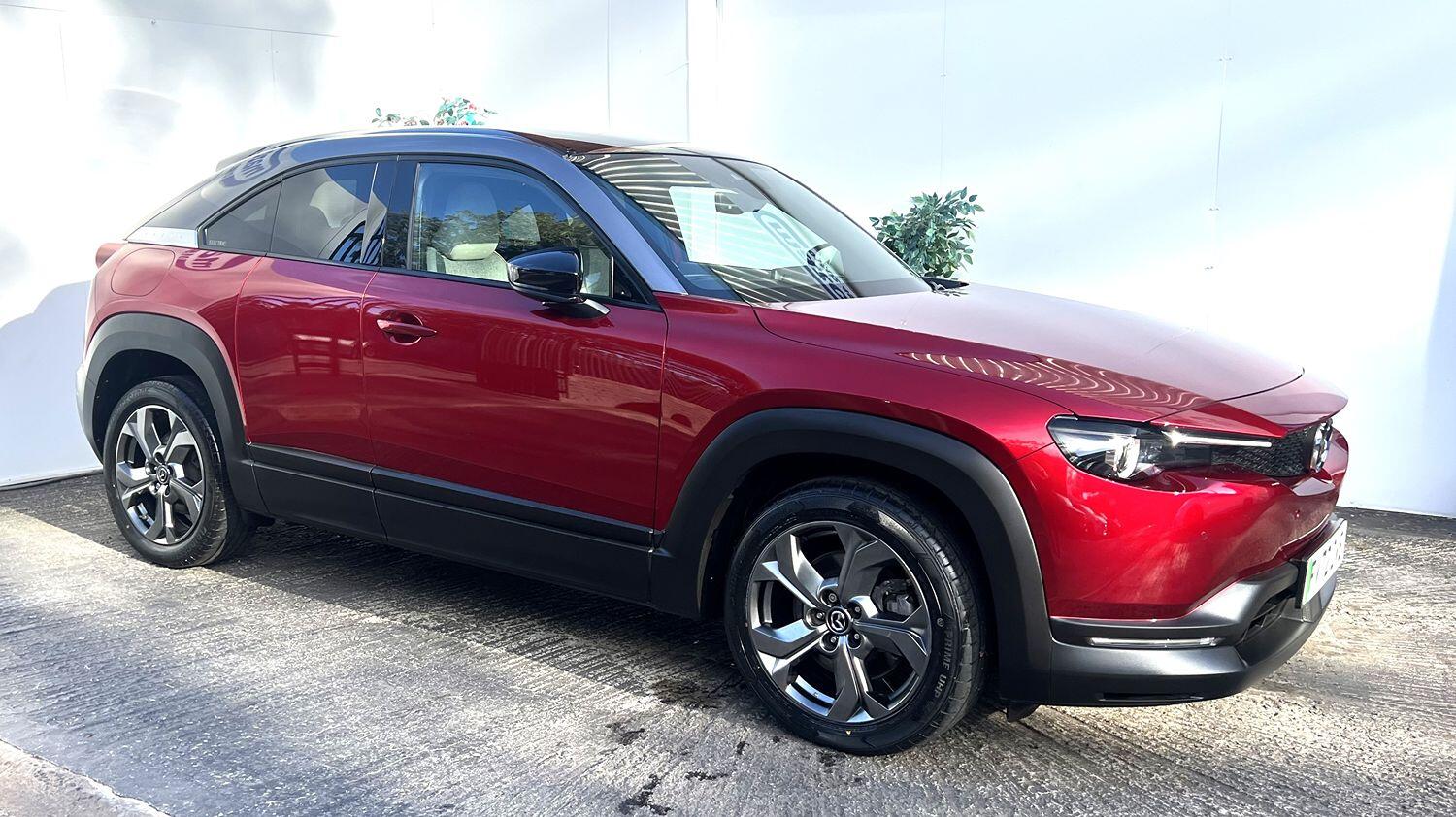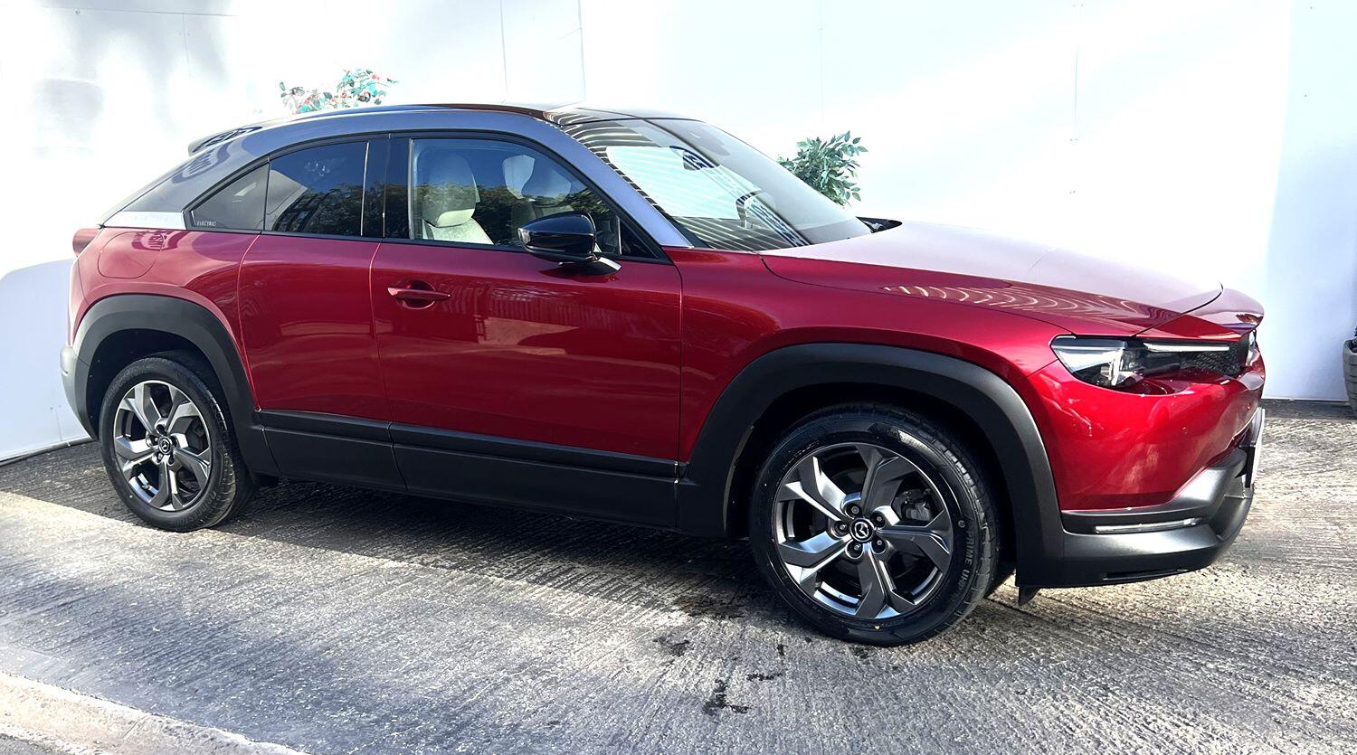 Mazd MX30 Sport Lux finished in Soul Red Crystal, just 26k miles, first registered November 2022, with full service history, 3 service stamps. The MOT is until 3/10/2026. The car features bluetooth, heads up display with traffic recognition, navigation, cruise control, blind spot monitoring, front and rear parking sensors with the additional benefit of reverse camera. The car is supplied with state of health report for the battery, grade A, 2 keys and book pack