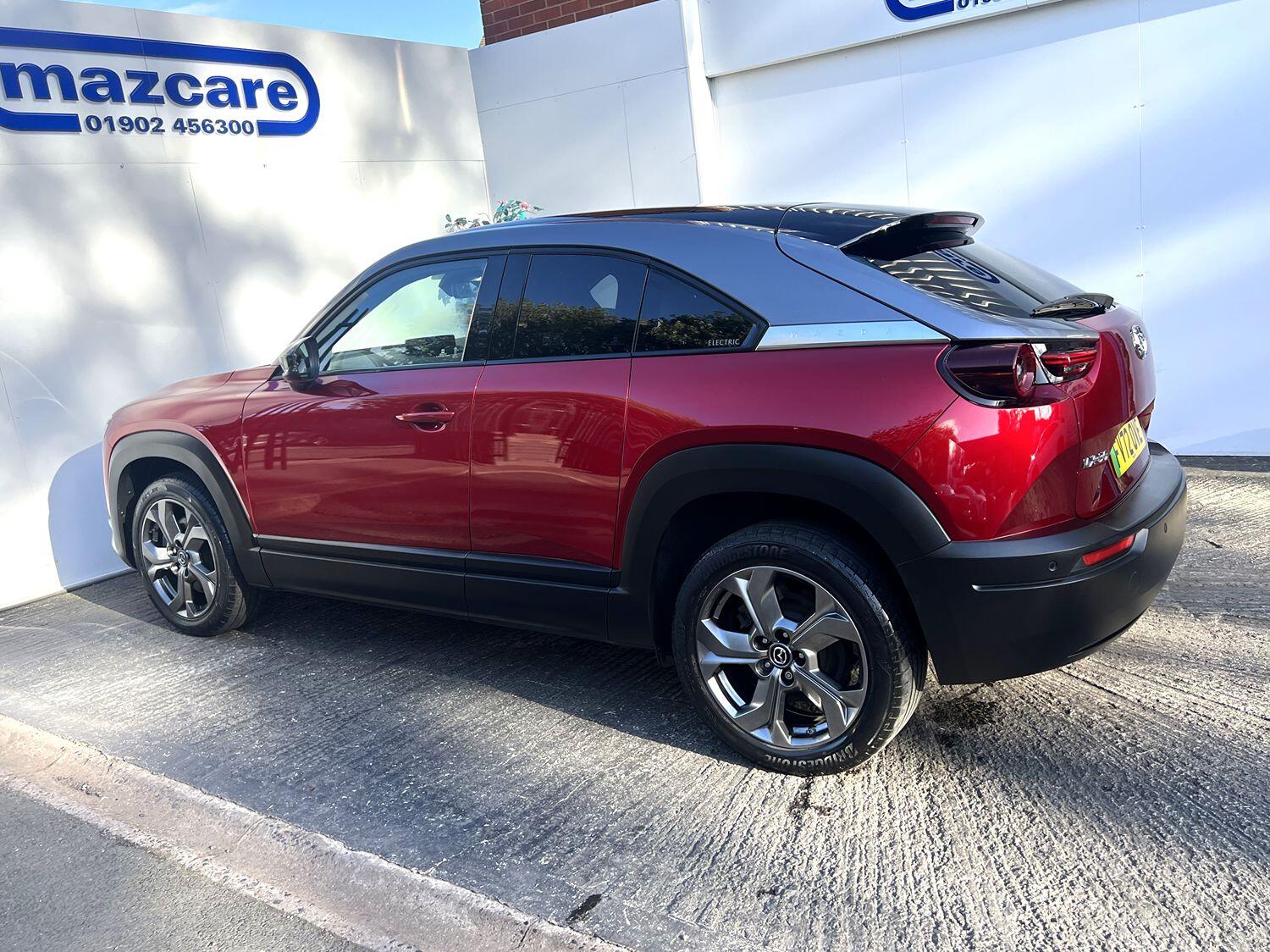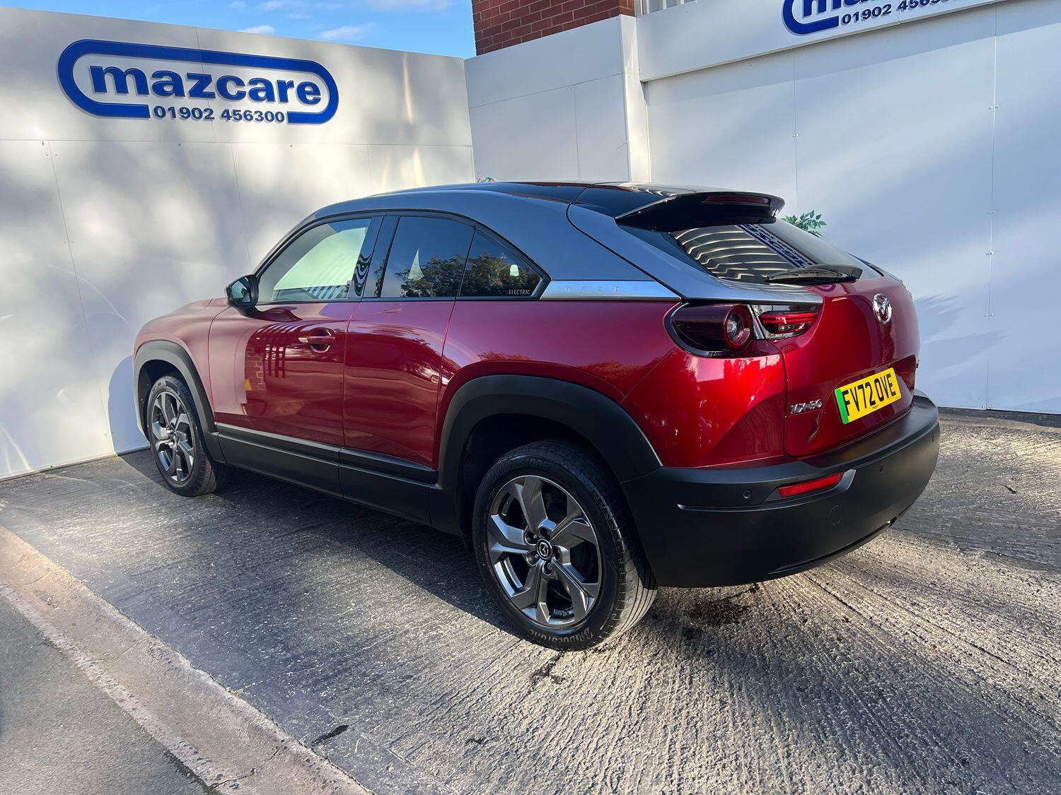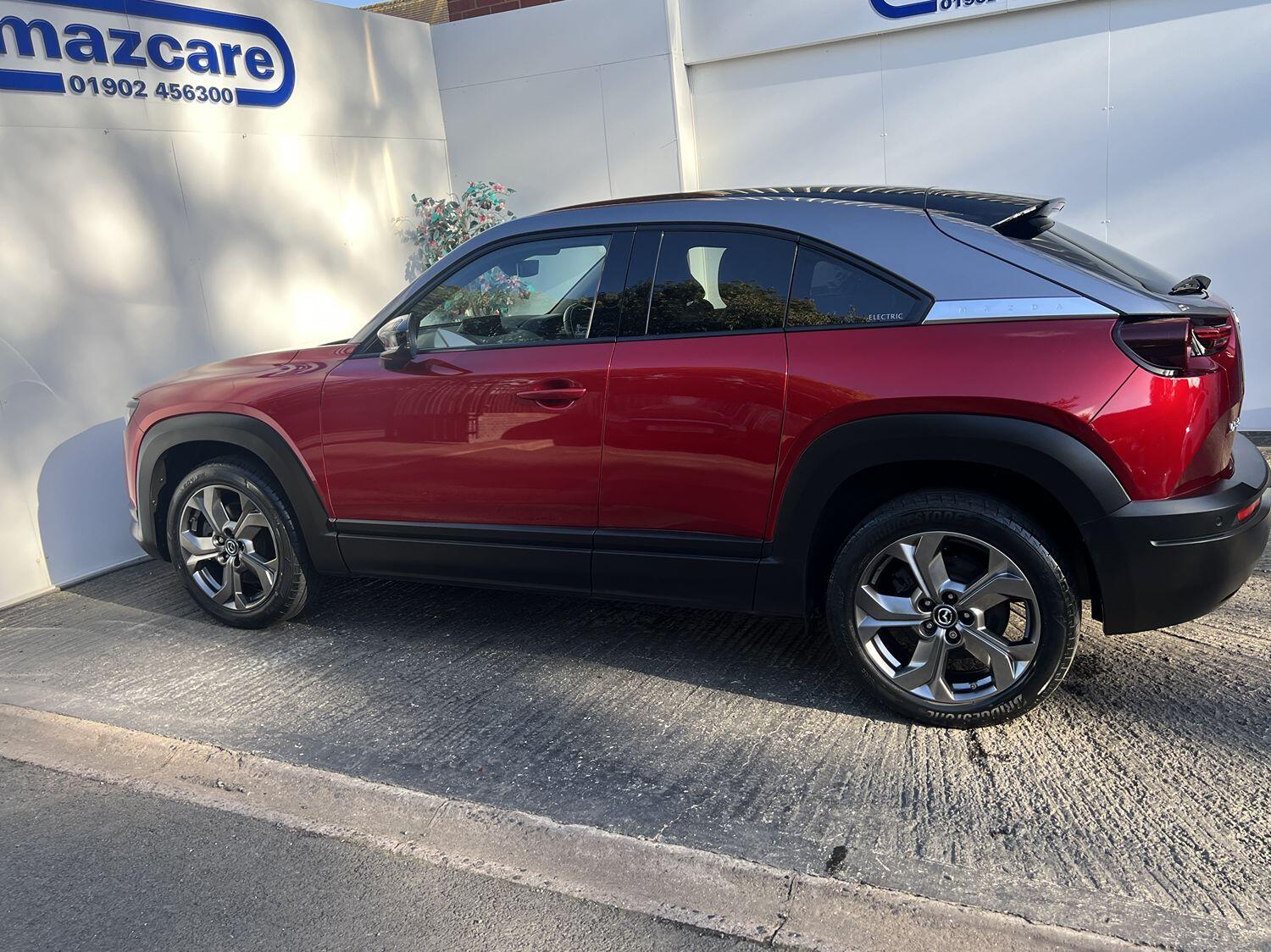 Mazd MX30 Sport Lux finished in Soul Red Crystal, just 26k miles, first registered November 2022, with full service history, 3 service stamps. The MOT is until 3/10/2026. The car features bluetooth, heads up display with traffic recognition, navigation, cruise control, blind spot monitoring, front and rear parking sensors with the additional benefit of reverse camera. The car is supplied with state of health report for the battery, grade A, 2 keys and book pack